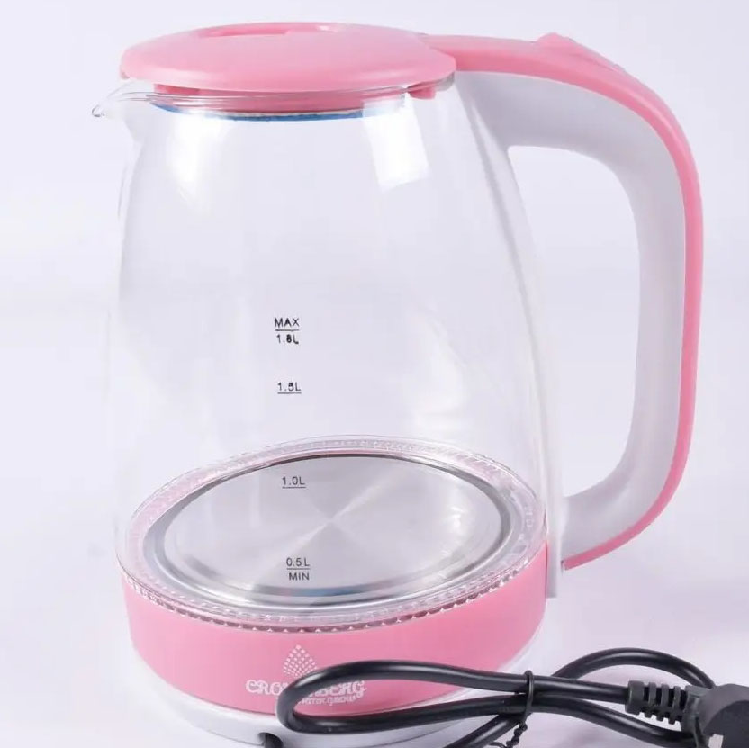 Електричний скляний чайник Crownberg CB-9410. NZ-113 Колір: рожевий